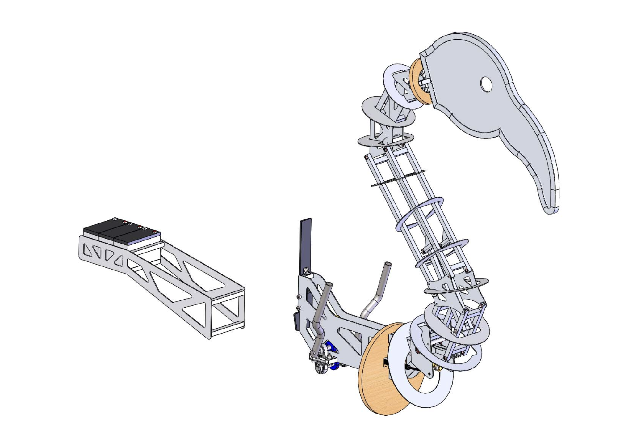 Flamant rose : Conception d’une structure légère et équilibrée d’un cou et tête de flamant rose, destinée à être manipulée par des acrobates sur échasses dans le cadre de spectacles de rue. Conception Denis Duplex, réalisation Christian Marrot.