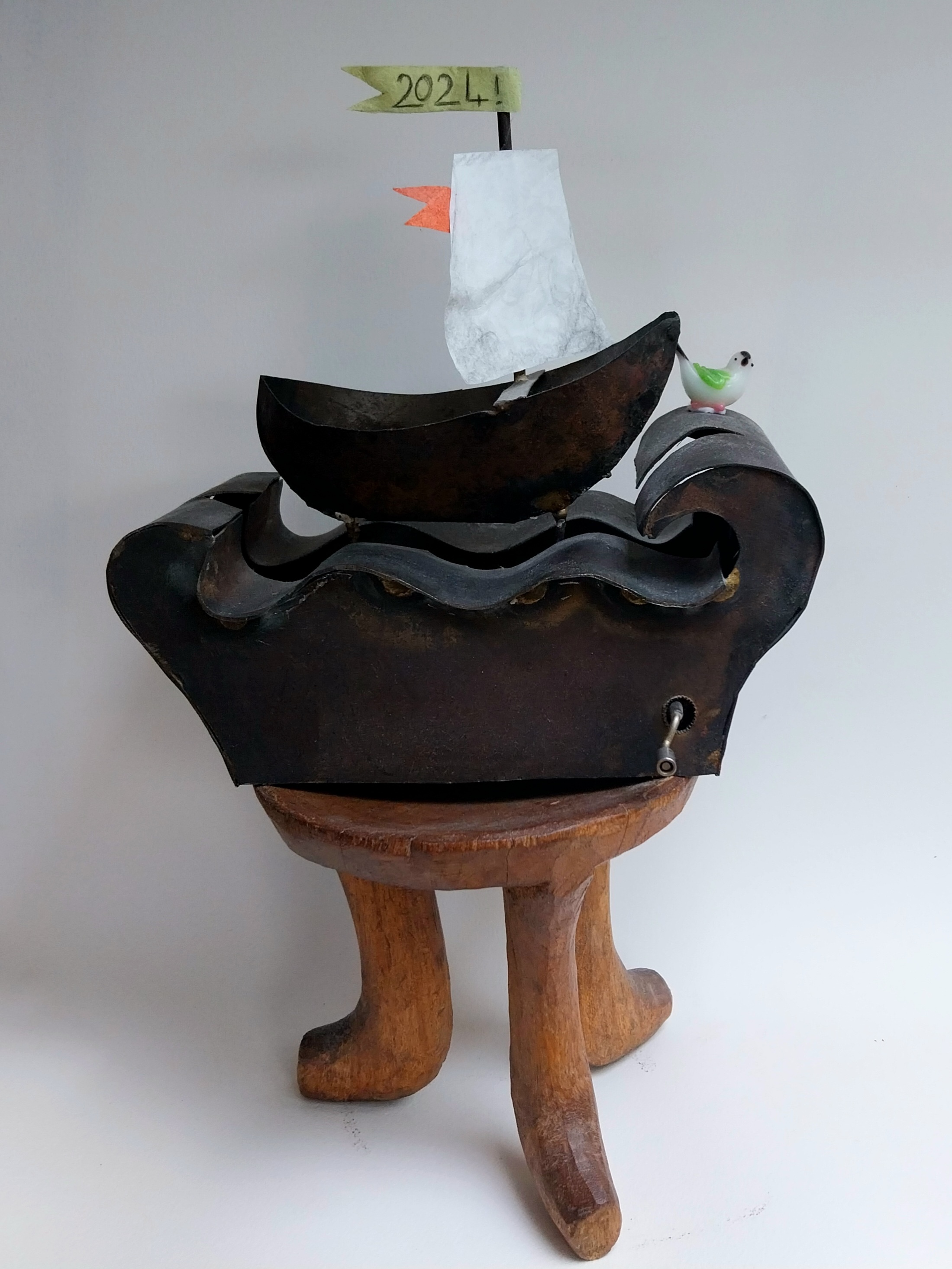 Acier, tissus, oiseau et boîte à musique